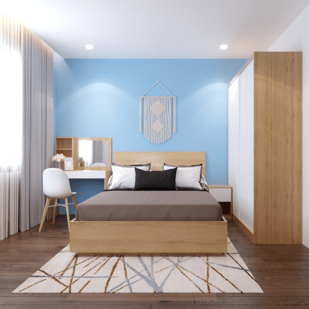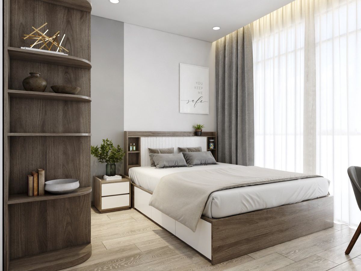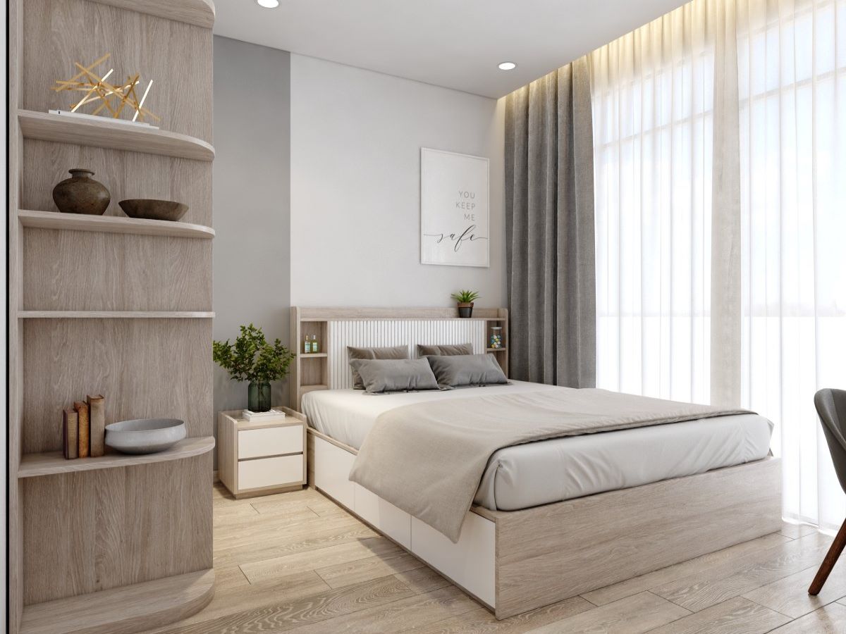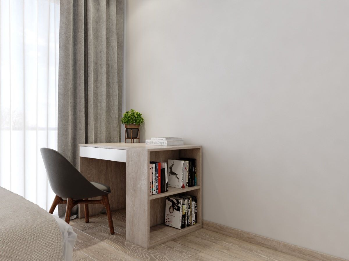 - Phòng ngủ phụ: Giường, tủ quần áo, tab đầu giường, bàn làm việc, kệ sách, ghế